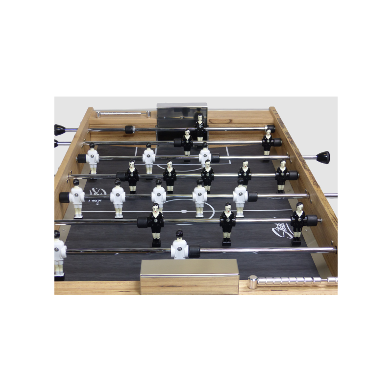 Le baby-foot baltique est fait artisanalement avec un mélange de matières nobles, le bois, l’aluminium, l’acier pour une solidité remarquable dans un design apaisant et séduisant à la fois. Il reste l’incarnation de l’esthétique d’un baby-foot de café apporté par la chaleur du bois d’hêtre massif peint à la main pour les pieds et l’élégance du « BauBuche Multiligne » pour la caisse. À vue d’œil, vous serez envoutée par sa beauté et tenté de jouer. Il est équipé des compteurs de points en aluminium, des cages de but en inox et de 8 flasques en aluminium siglé « Stella Star ».